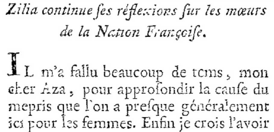 « Il m’a fallu beaucoup de temps, mon cher Aza, pour approfondir la cause du mépris qu’on a presque généralement ici pour les femmes. »